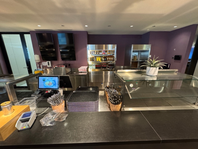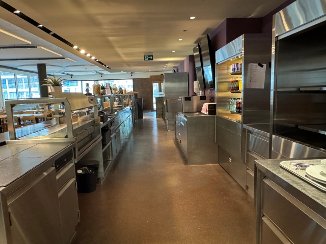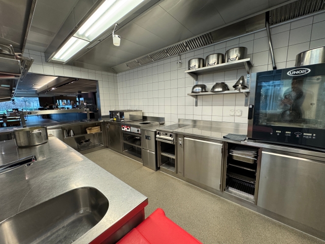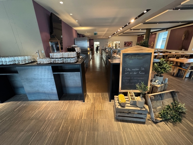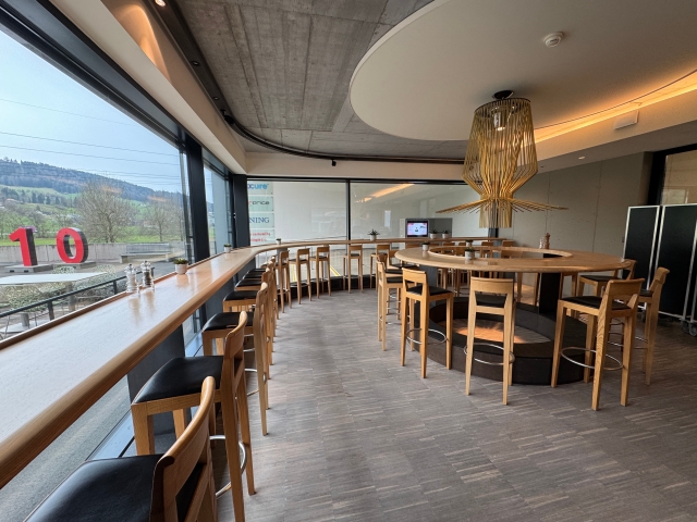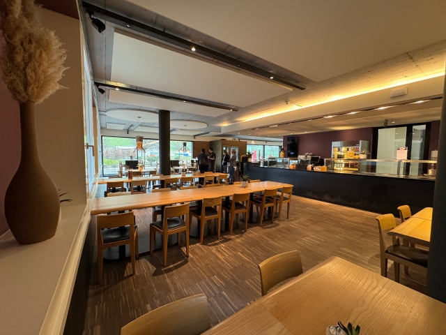 Die Gastronomiefläche umfasst 421 m², verteilt auf den grosszügigen Restaurantbereich mit 110 Sitzplätzen, der gemütlichen Lounge mit rund 45 Plätzen, der attraktiven Aussenfläche mit bis zu 60 Sitzplätzen auf dem zentralen Platz, der Küche, diverse Lagerflächen und Garderoben. Der Gastronomiebetrieb eignet sich besonders gut als À-la-carte-Restaurant. Im Gebäudekomplex nebenan befindet sich das Selbstbedienungsrestaurant Oasis, das ebenfalls zur Vermietung angeboten wird.