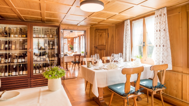 Im Mittelpunkt steht das Restaurant mit zwei Gasträumen: Gaststube und Stübli, sowie einem Saal im EG. Diese bieten zusammen 58 Innenplätze und 40 Sitzplätze auf der Sonnenterrasse und dem Gartensitzplatz unter Kastanienbäumen. Das Haus, der Ort und die Naturkulisse sorgen für eine besondere Atmosphäre, sei es beim Apéro mit Blick auf den See oder beim mehrgängigen Dinner im Abendlicht.
